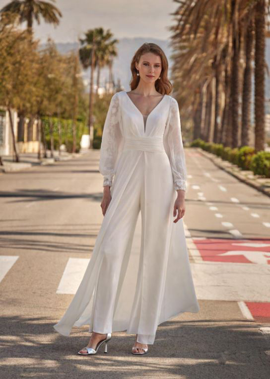 Une magnifique combinaison avec ses manches floues en dentelle.