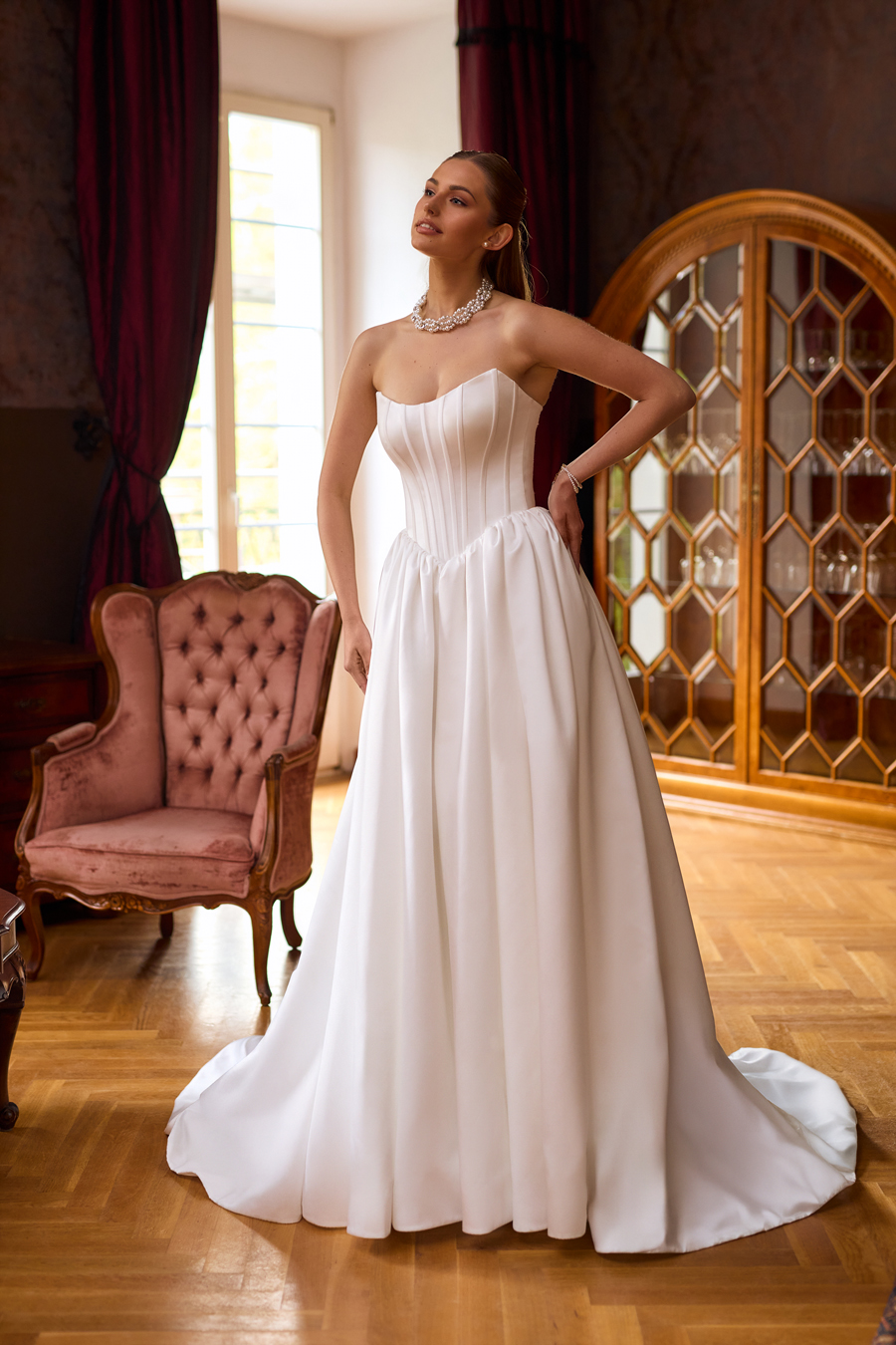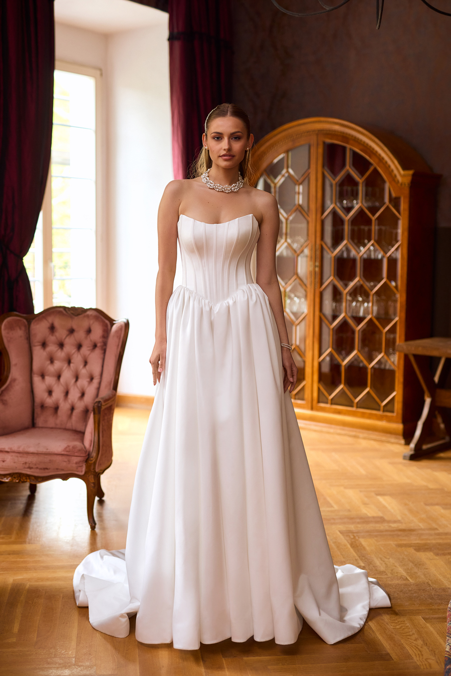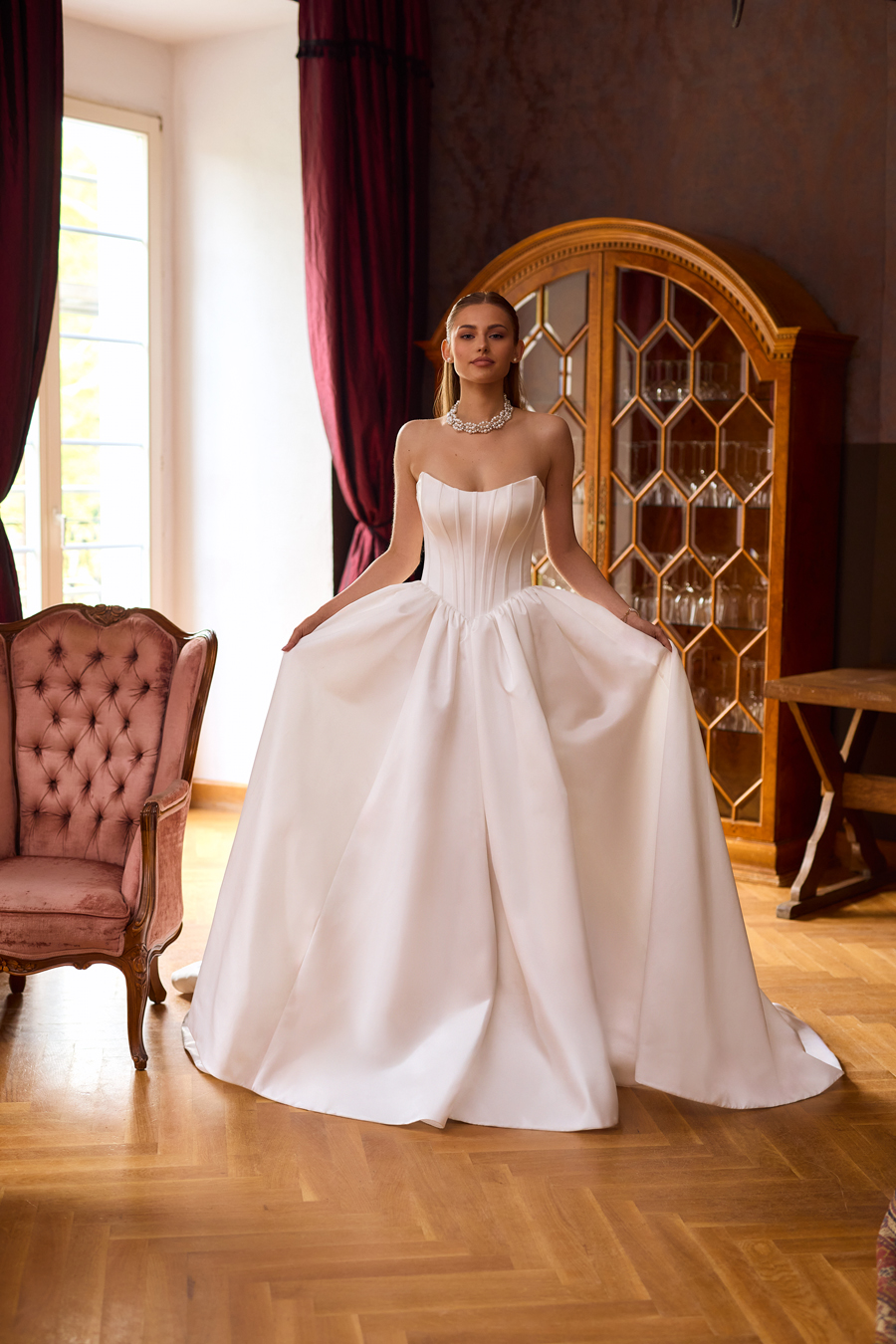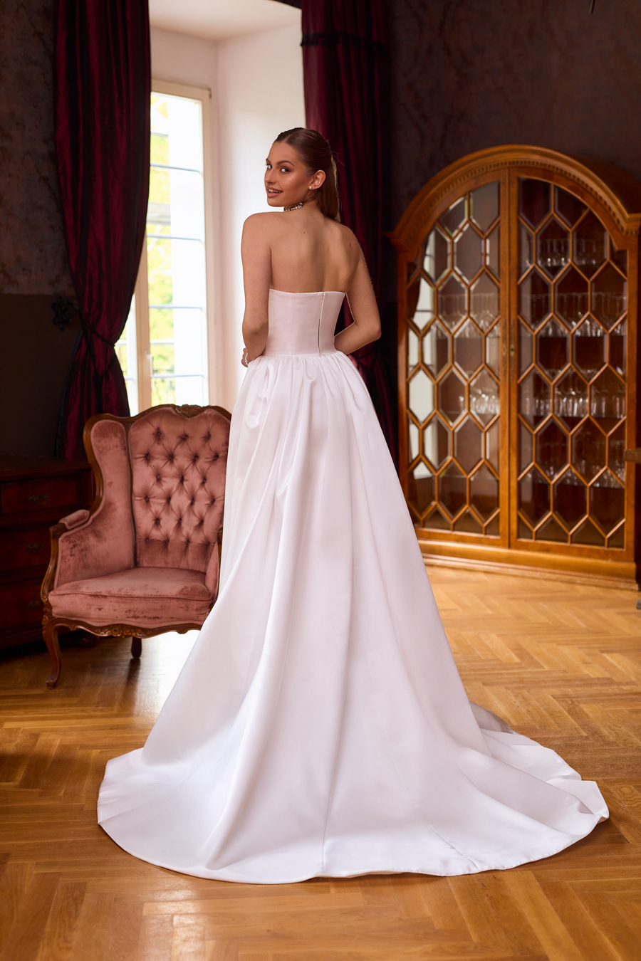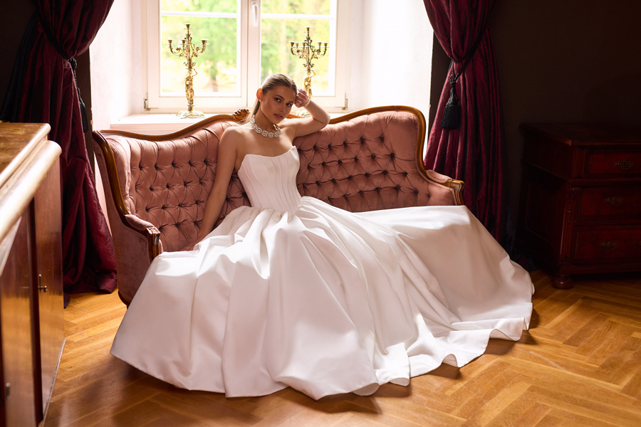 Une ode à l’élégance avec cette magnifique robe bustier en satin.