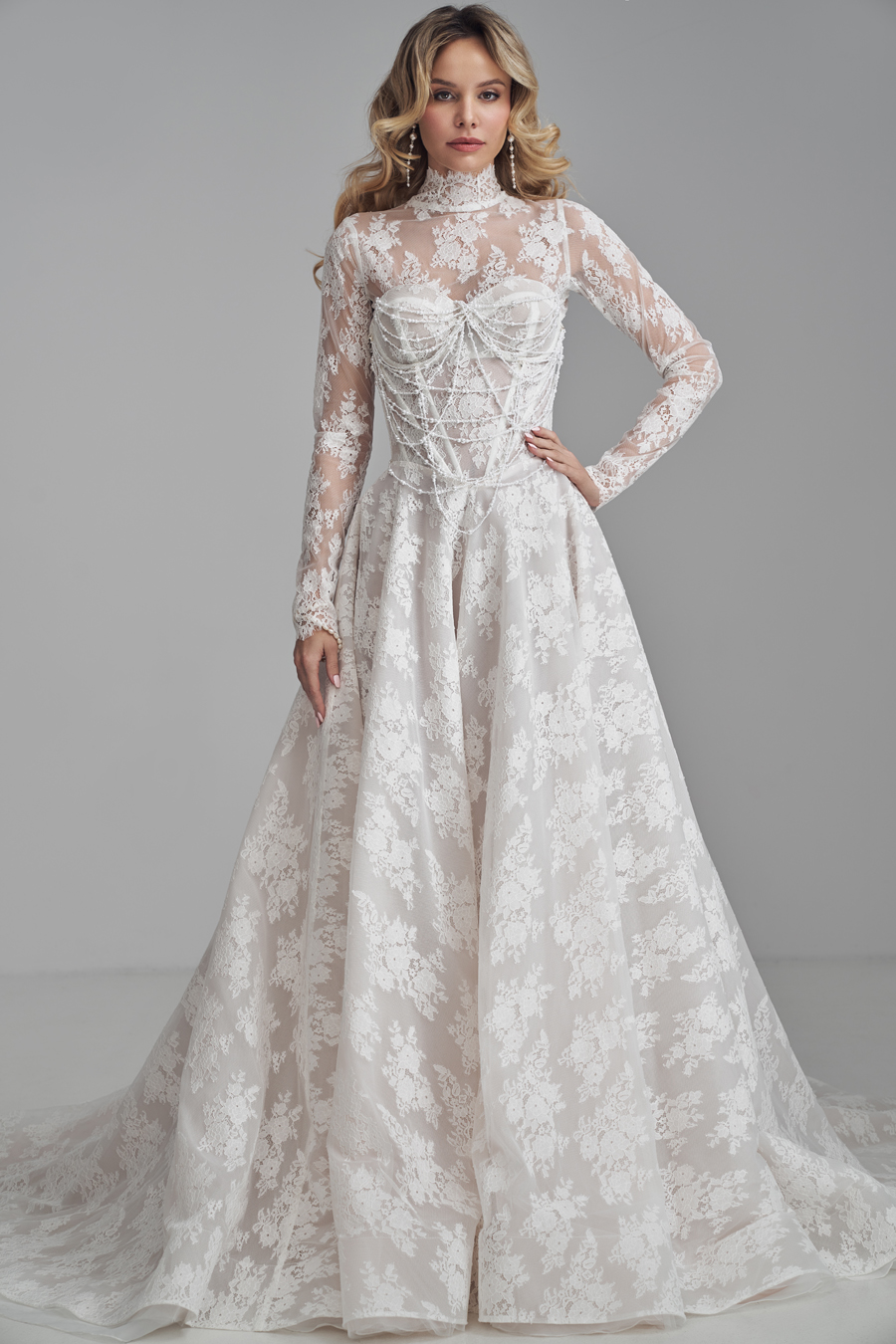 Modernité et élégance avec cette magnifique robe bustier toute en dentelle avec son top amovible.