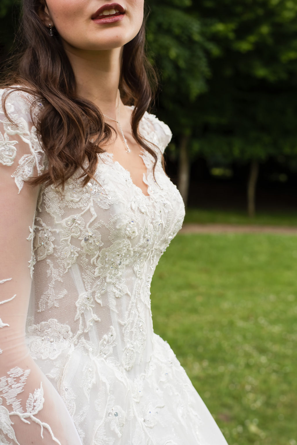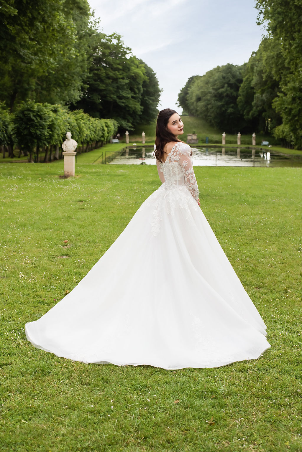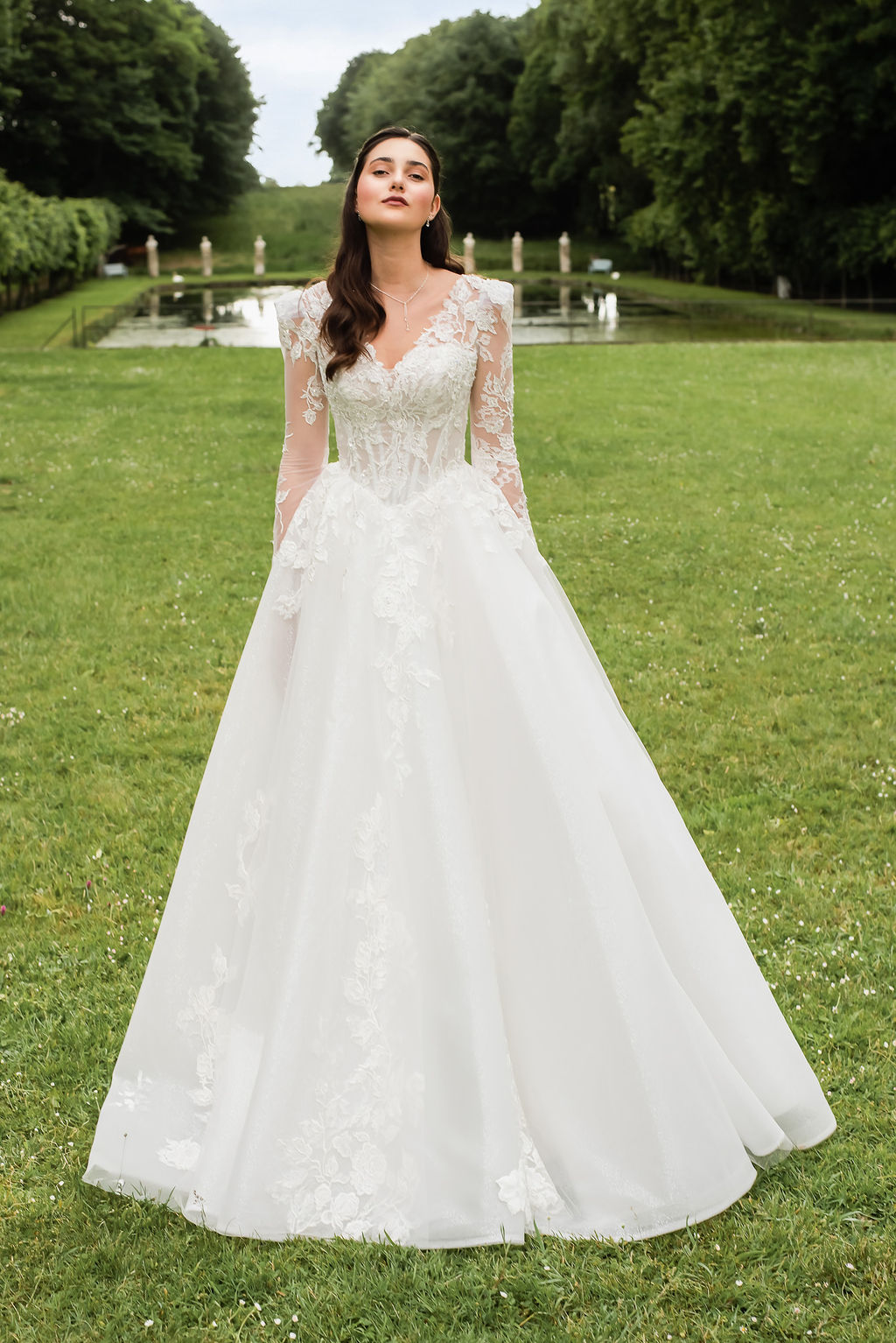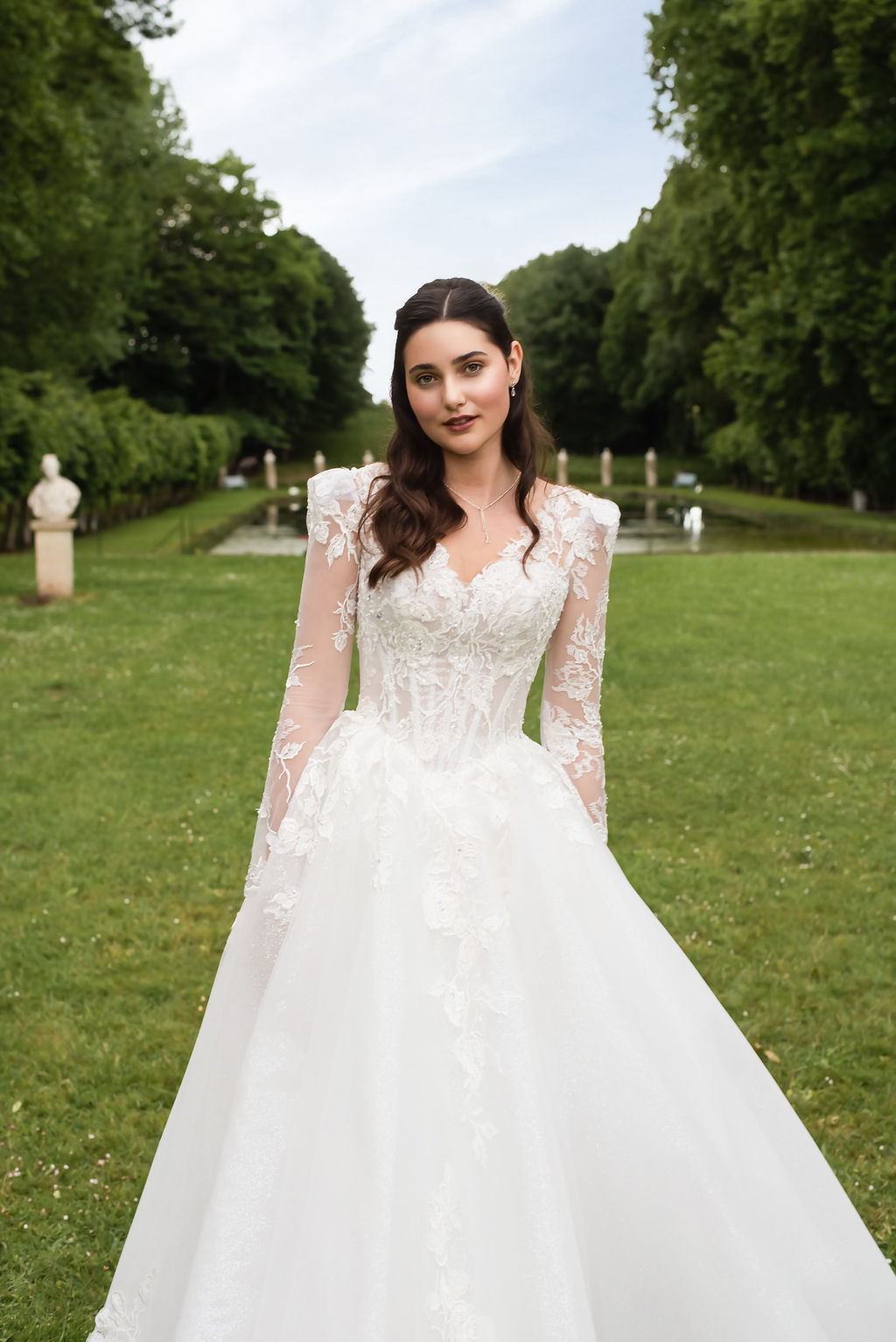 Une robe digne d’un mariage princier avec son volume et ses détails perlés.